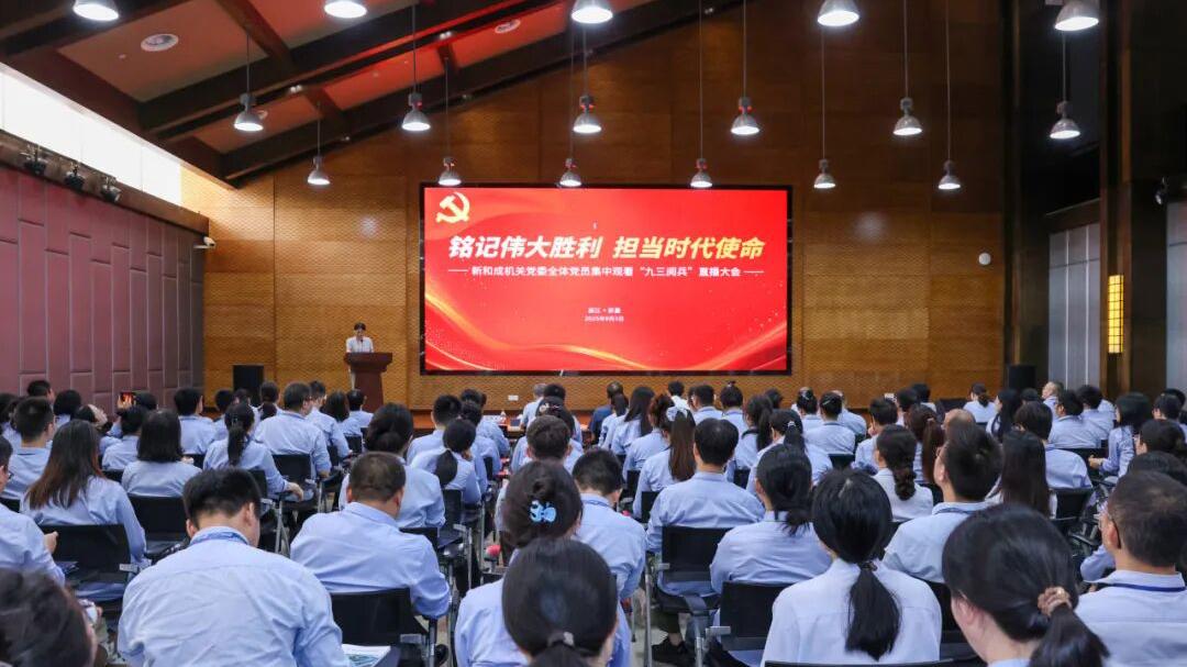 9月3日上午9時,新和成機關黨委及各基地黨委組織黨員,集體觀看紀念中國人民抗日戰爭暨世界反法西斯戰爭勝利80周年大會直播,共同汲取精神力量。