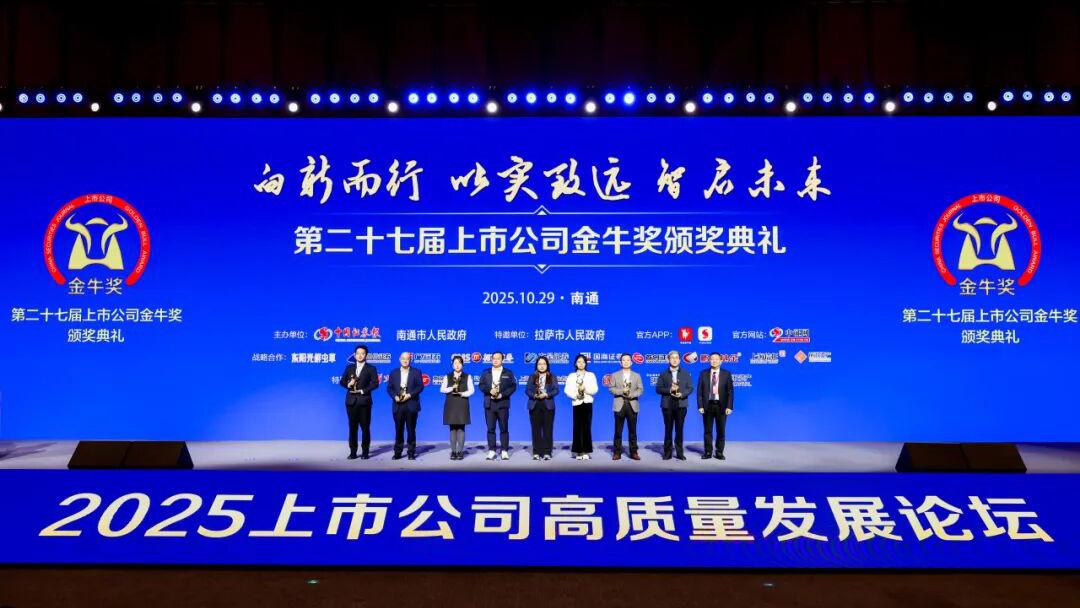 10月29日,由中國證券報與南通市人民政府聯合主辦的第二十七屆上市公司“金牛獎”頒獎典禮在江蘇南通隆重舉行。